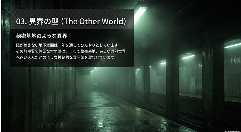 絶えず壁面を滴り落ちる地下水。ここは、鉄道インフラが期せずして作り出した、現代の『地底回廊』である。」