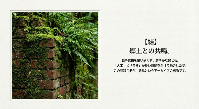東京湾に浮かぶ唯一の自然島。幕末から明治にかけて構築された要塞の切通しには、日本でも数少ない「フランス積み」の煉瓦が、一億年の地層のように静かに佇んでいる。