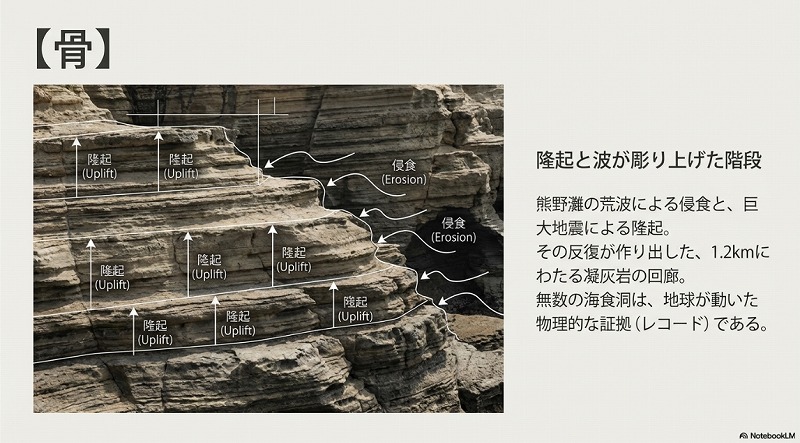 「浸食」のプロセスを体感する、地球の変動博物館としての解釈。